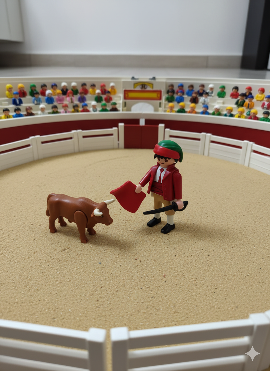 A playmobil style figure of the typical portuguese bullfighter who catches the bull head. Includes his hat and clothing. Measurements 7cm x 3cm Bulls and rings are not included