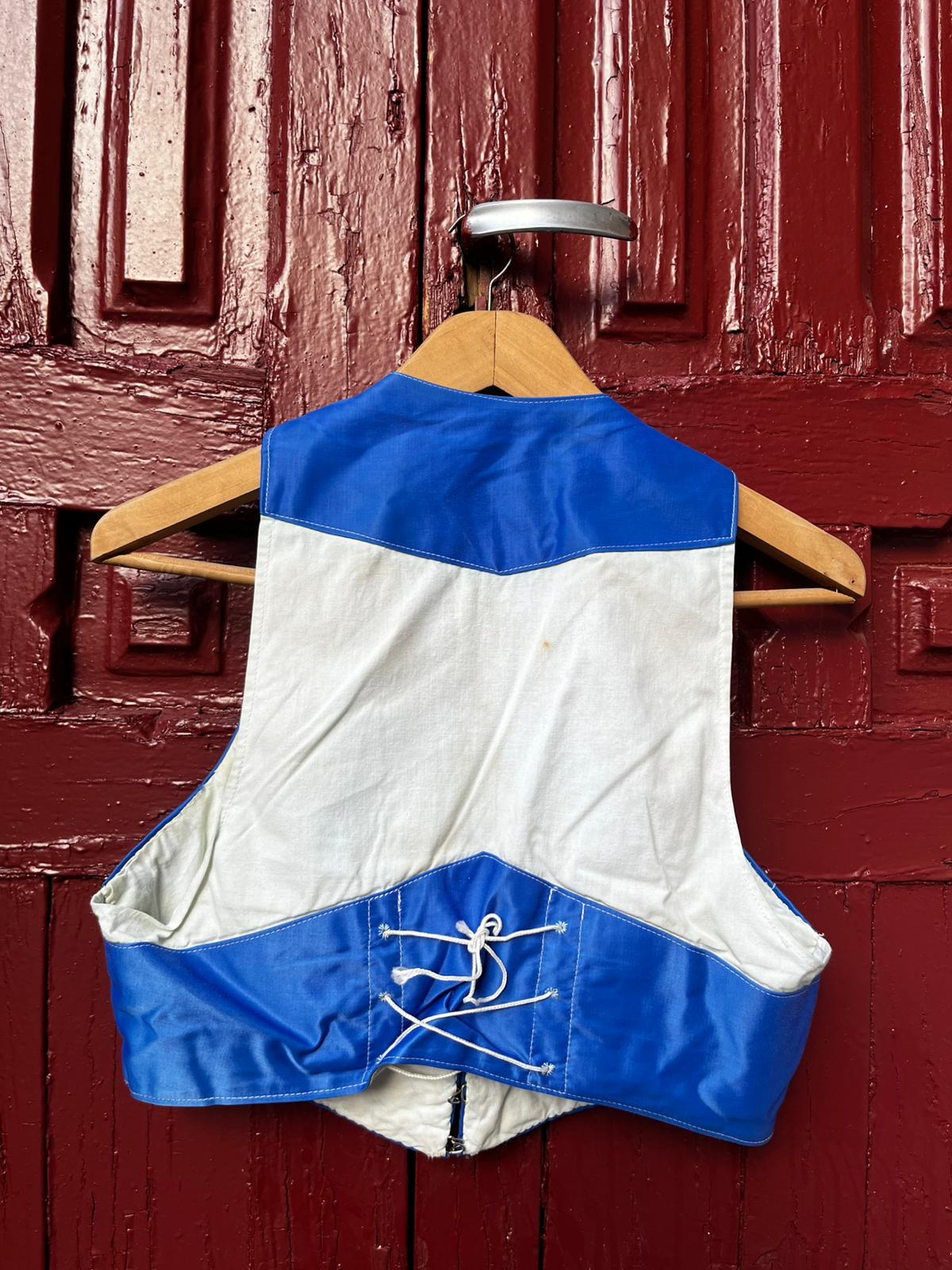 It is important to note that this Blue and Silver Matador Costume by Justo Algaba is in used condition and is offered exclusively as a decorative or collector’s item. Therefore, it is not suitable for professional use in the bullring.