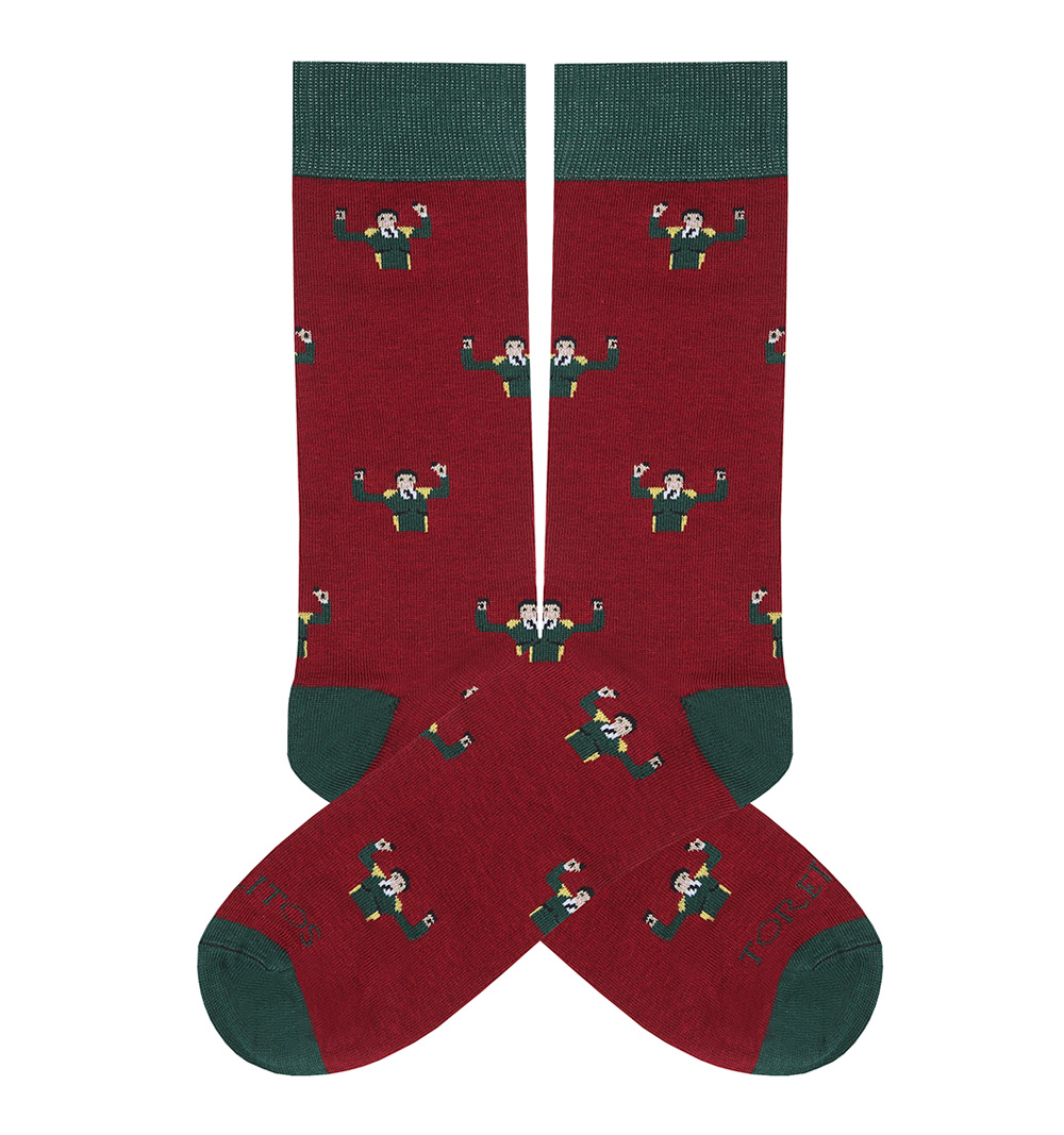 The new Two ears Bullfighting Socks by Toreritos are available in two sizes: small (35-40) and large (41-45). Made with 80% cotton, 17% polyamide and 3% lycra. The sock length is 23 cm.