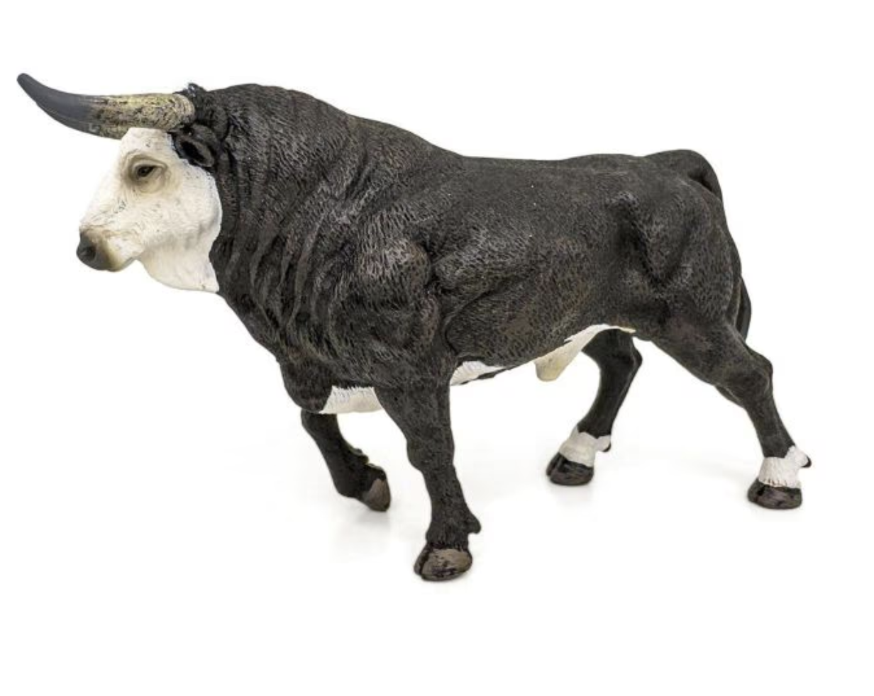 Toro bravo de juguete trotando, marca Deqube, una réplica del toro de lidia a escala pintada a mano con el máximo de detalles. Muchos colores disponibles.